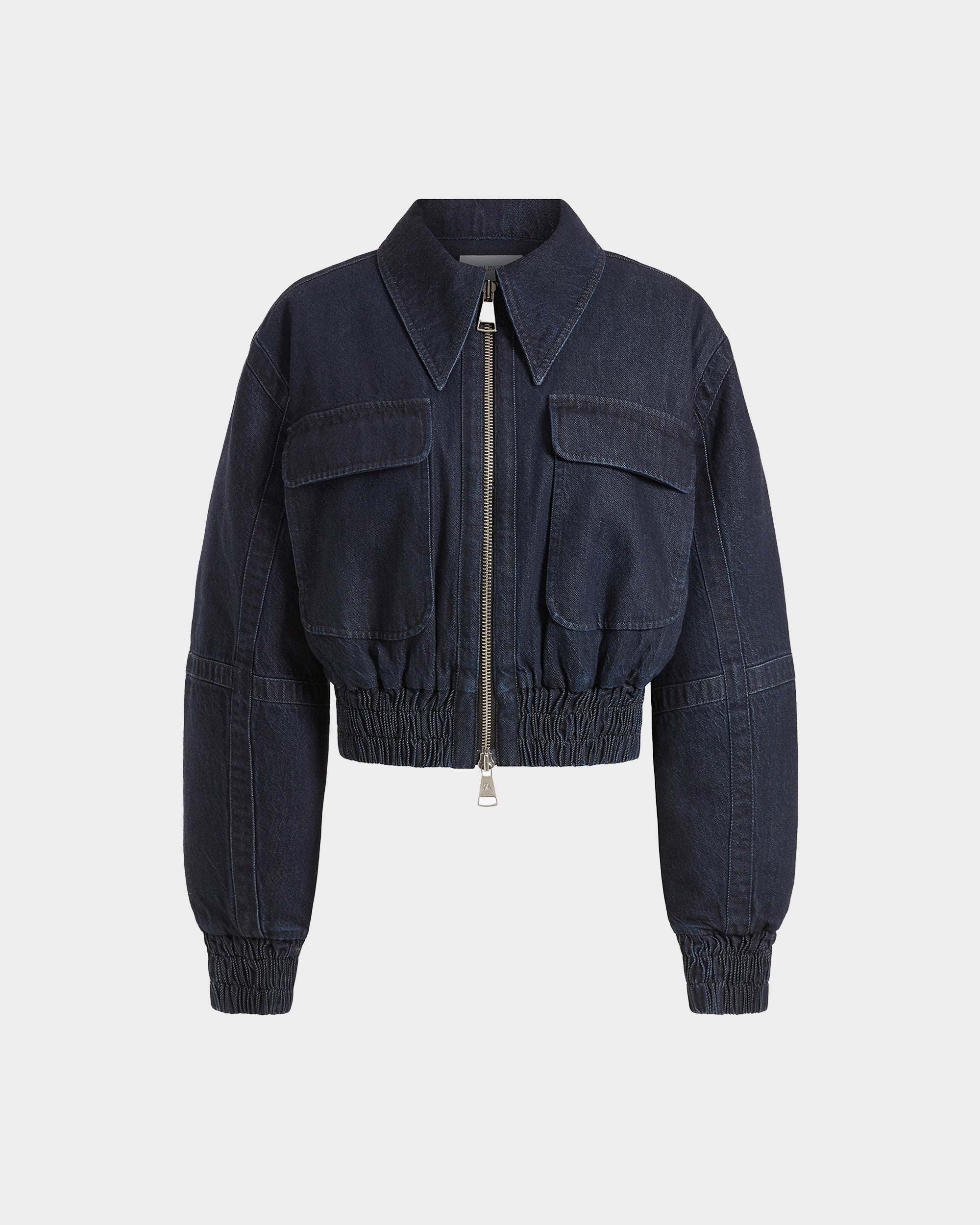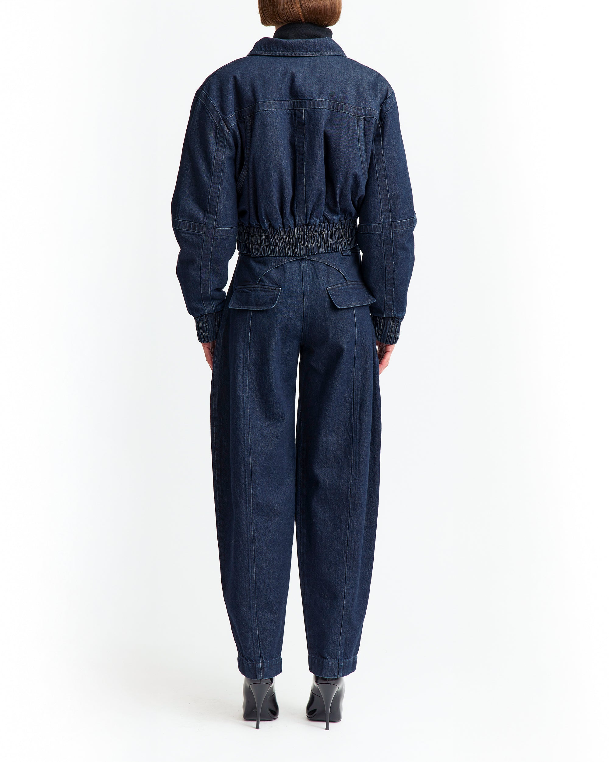 The Cie Jacket is a slightly cropped, collared design cut from structured denim. It features a balloon-shaped body that cinches at the waist for a defined silhouette, finished with a signature branded 16A zip down the front. Designed to match with the Alcea Trouser, it offers a sculptural take on classic denim with a modern, utility-inspired edge.