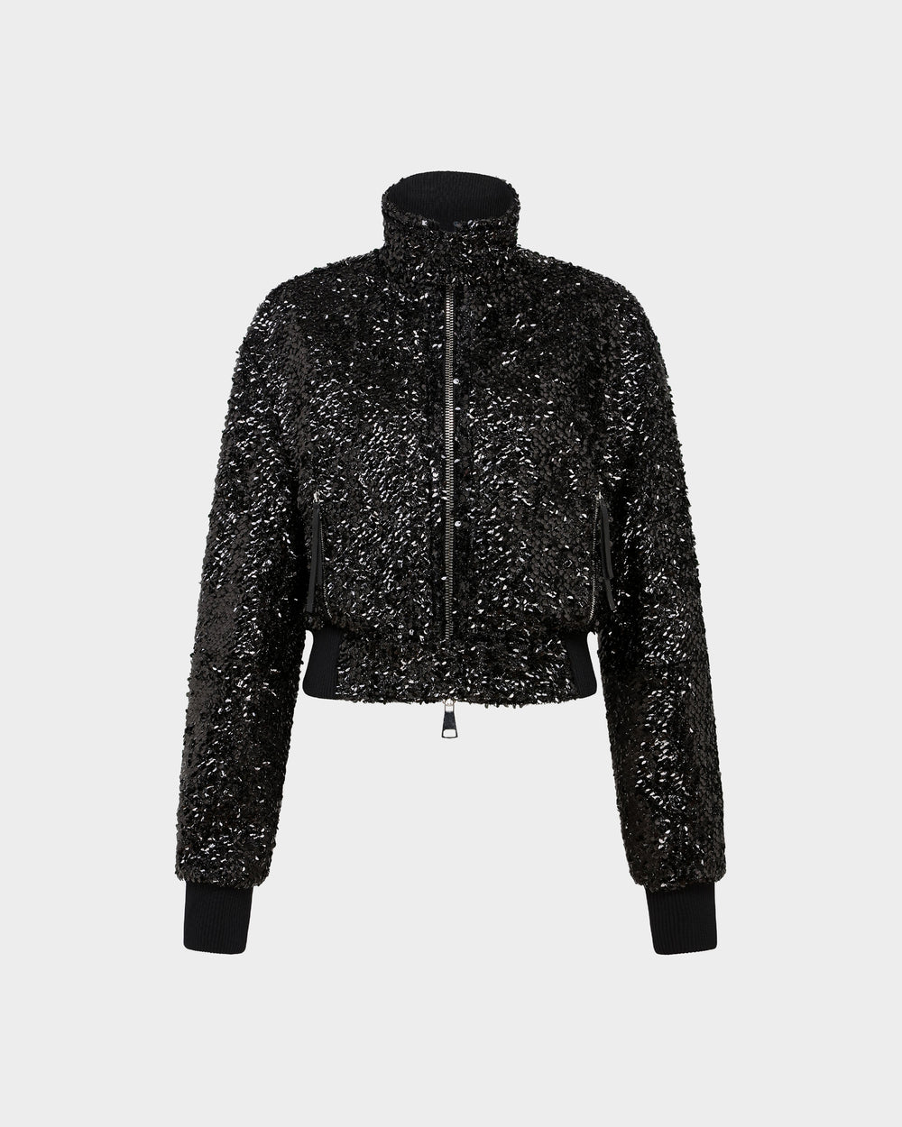 The Azra Trouser is crafted from black textured sequin, designed as a fitted silhouette that contours the leg with sleek precision. A zip at the ankle allows for a subtle flare, adding versatility and movement to the streamlined shape. Hidden zip pockets at the sides maintain the clean lines, while the textured sequin finish echoes the luxe detail of the matching Cosima Jacket.