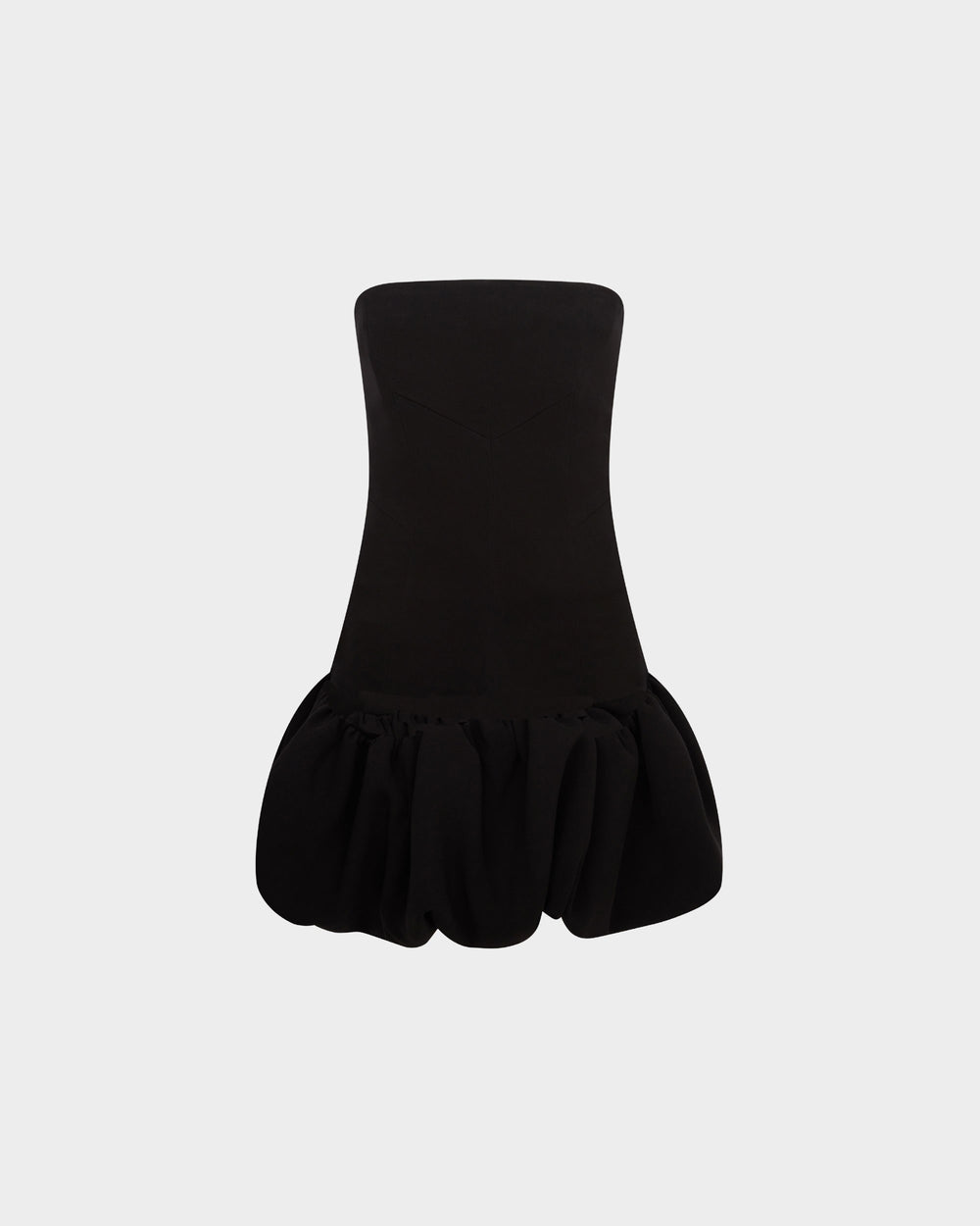The Garance Mini Dress is a refined party silhouette crafted from textured sequin fabric with a soft, luminous finish. Strapless and form-fitting through the bodice, it flares into a sculptural bubble peplum skirt, bringing a playful yet elevated twist to classic eveningwear.