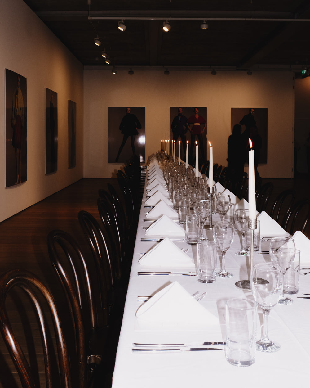 To celebrate the launch of its Autumn/Winter 2025 collection, Lights On, 16Arlington hosted an intimate dinner at Almine Rech London, Mayfair. The 16Arlington community gathered to view the collection, presented through large-scale imagery of all 25 looks across the gallery walls. The event offered an immersive experience, allowing guests to engage closely with the collection’s spirit, mood, and details.