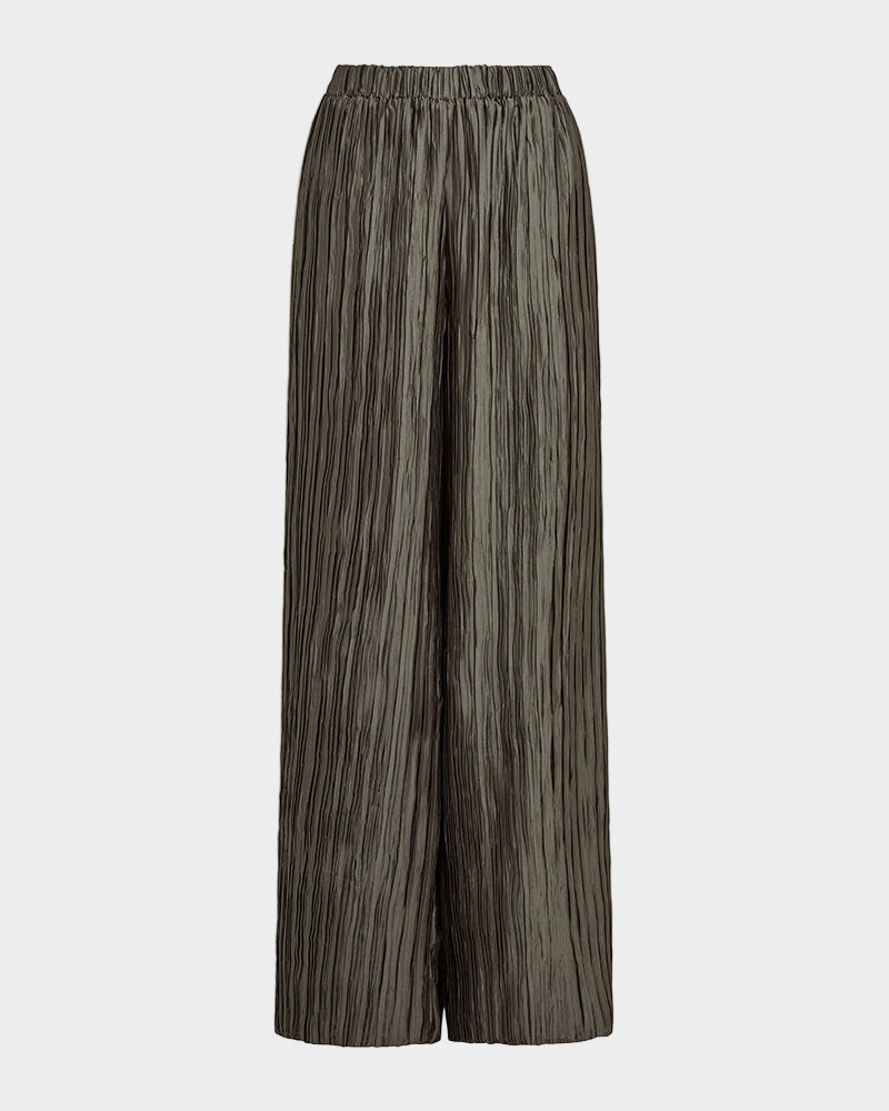 The Argo Trouser is a wide-leg design cut from fluid, lustrous satin for effortless movement. It features an elasticated waistband, concealed hip pockets, and precise waist darts for subtle structure. Styled with the matching Ardo Jacket, this piece offers a refined yet relaxed take on modern tailoring.