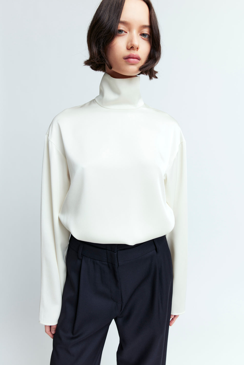 The Bia Coat is a collarless shearling coat with hidden hook fastenings. It features two pockets at the front and is designed to fit close to the body. It falls just below the waist and is also available in green