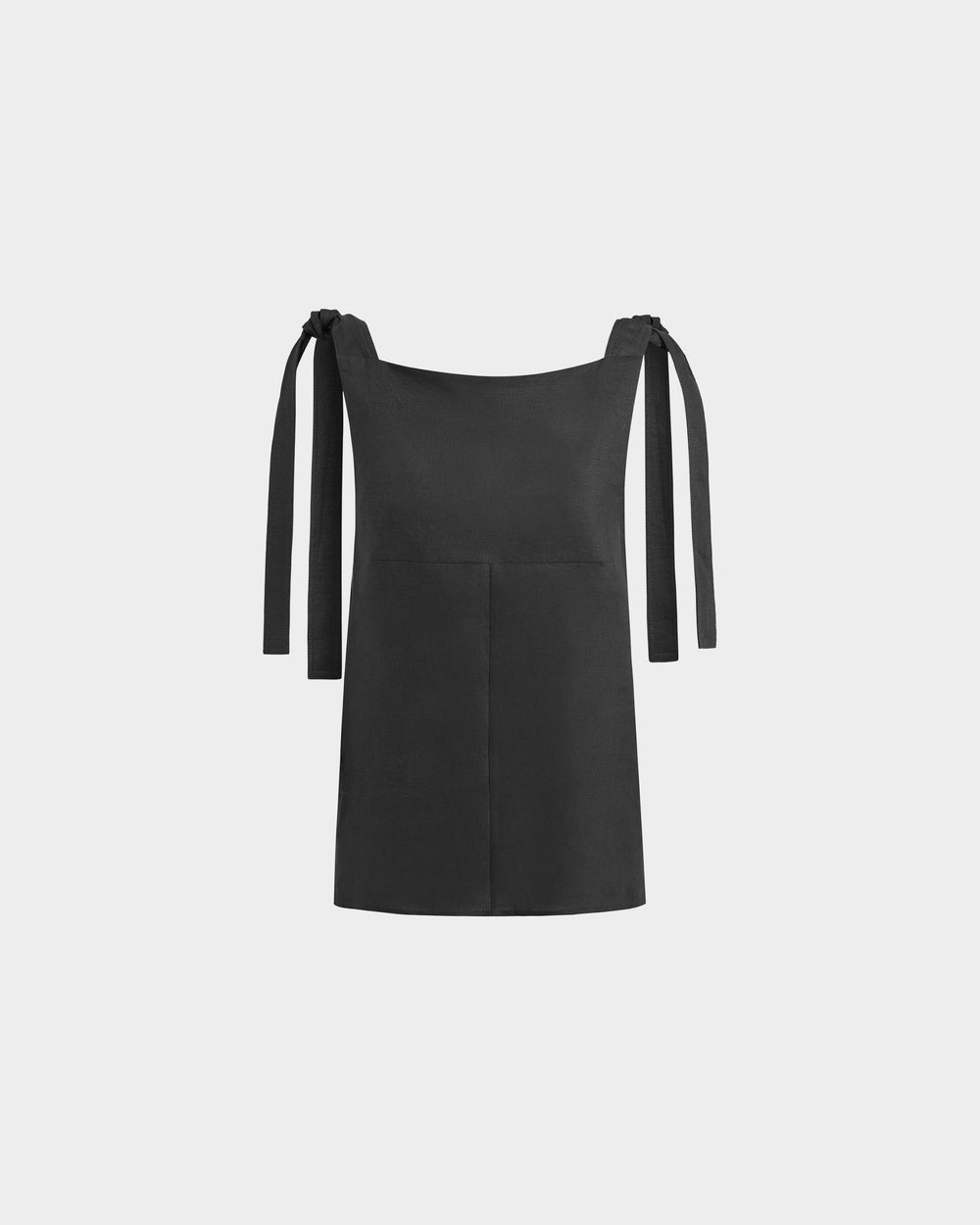 The Bridgetta Top in black is cut from signature jersey for a slim-fitting silhouette. It features a racer neckline that extends into long ribbons, which can be tied at the back for a custom fit.